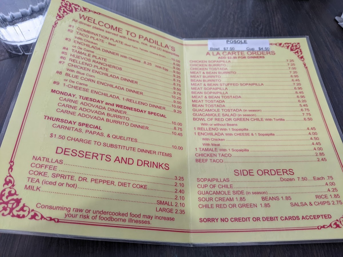 Padilla's Mexican Kitchen Menu (2025 Update)
